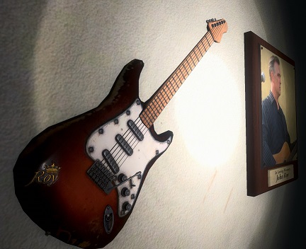 -Making the electric guitar for John Roy was a meaningful task. John is somebody I have worked with for over 20 years. When John suddenly passed away, we decided to put in something that would honor him. He was a gifted musician so I decided to make a guitar for him. We turned it into a tribute object in the Roy-O-Line gas station that John initially created in our initial energetic development frenzy. I hope it is a worthy tribute, and I hope that H1Z1 is hugely popular and that guitar that gently weeps will linger a long time.