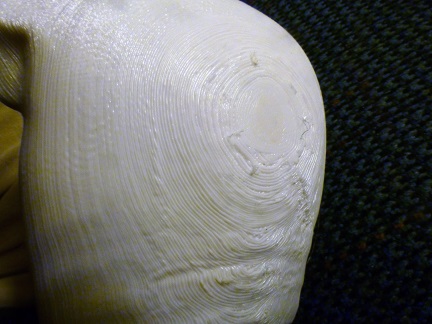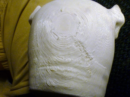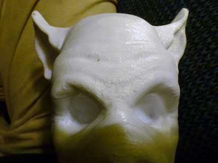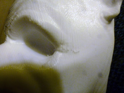 The first thing I did was inspect the trophies. These were printed in two parts. The bases were a black, shiny material, and the faces were white. The bases were relatively clean; they mostly had some wiry filaments that I had to pull off. The faces were more of a challenge due to the number of pits and striations. There would be filling!