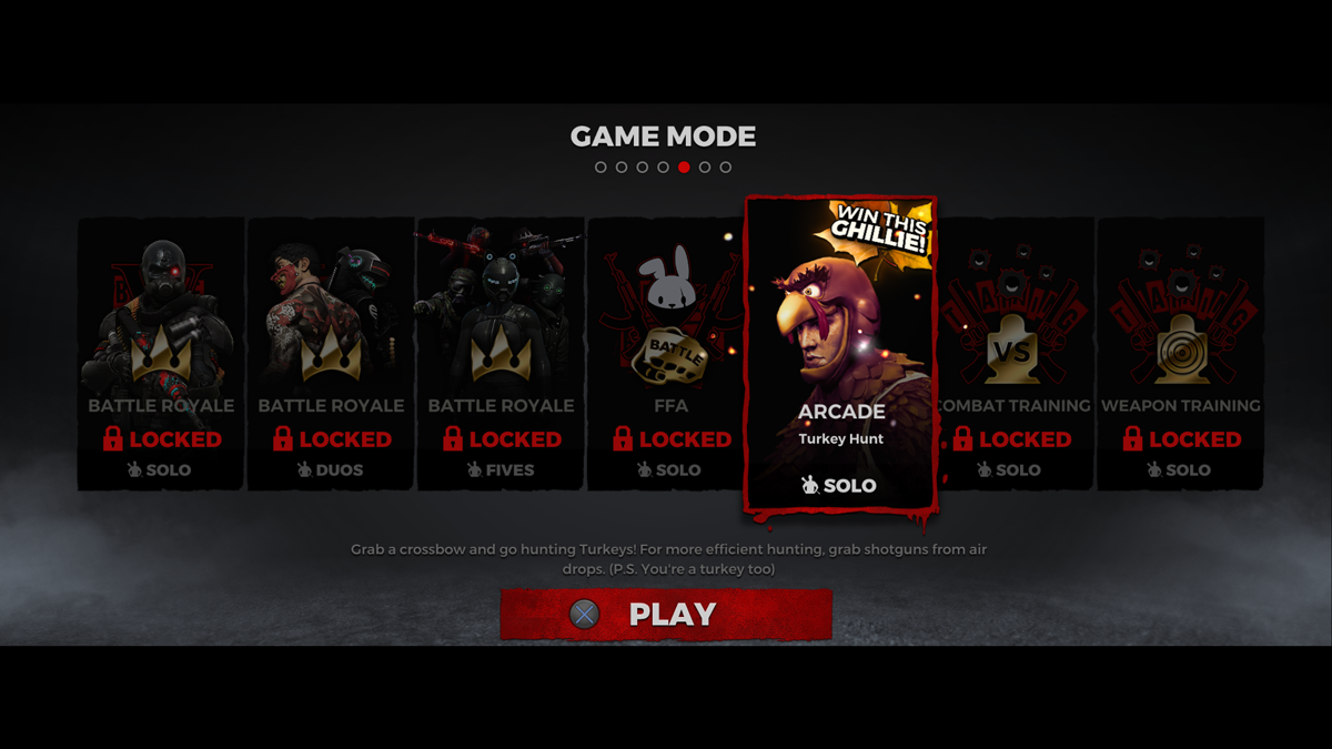 As befitting a skilled game hunter, Crossbows are lootable in-match, with Shotguns available via air drops. Win 1 match of Turkey Hunt while it's available in Arcade Mode and you'll automatically unlock the Overstuffed Turkey Ghillie to wear in any game mode!
